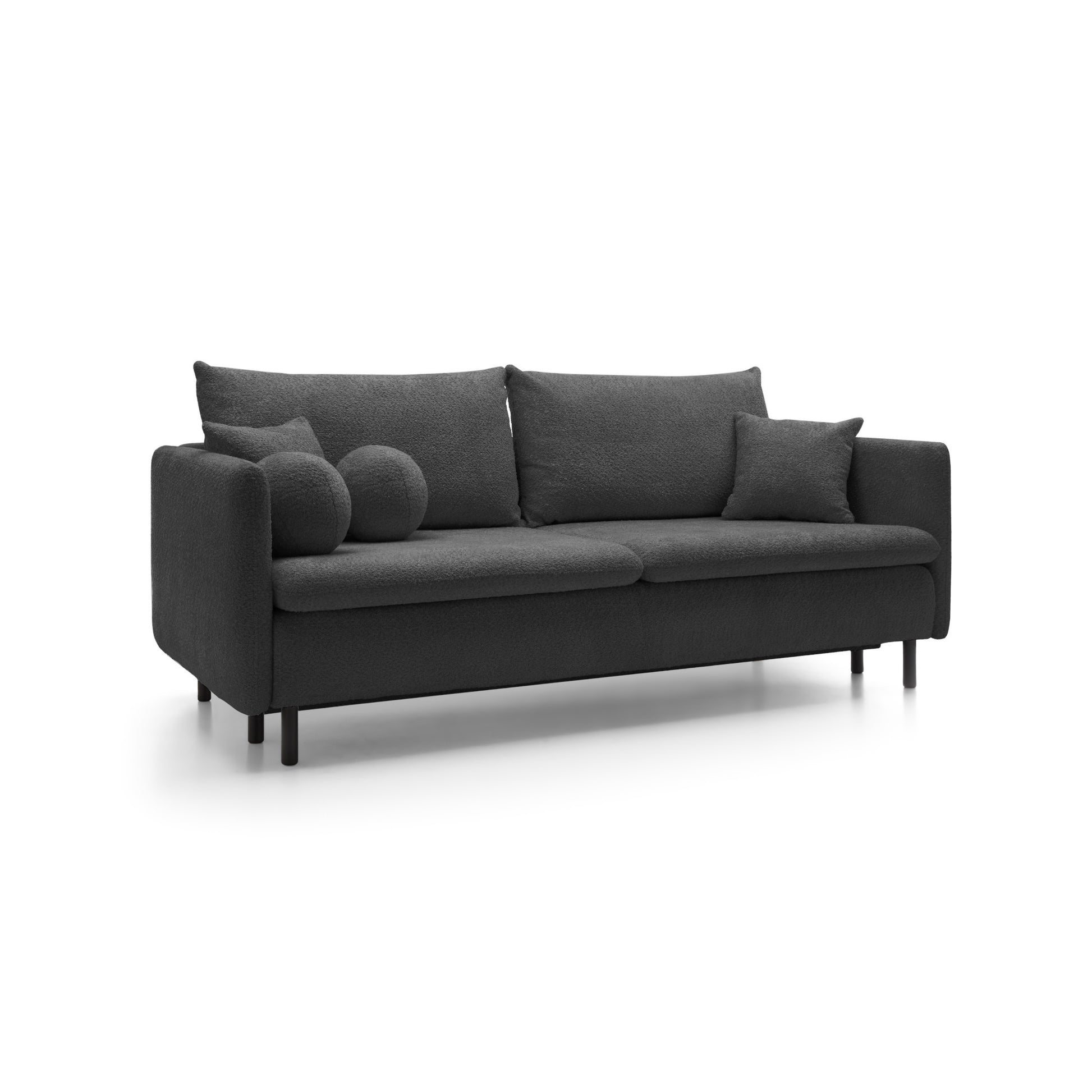 Szerokie, wygodne siedzisko zaprasza do relaksu, a obszerne poduszki oparcia gwarantują maksymalny komfort. Dodatkowym atutem są dekoracyjne poduszki w różnych kształtach, które nadają sofie unikalnego wyglądu, wprowadzając element zabawy do jej stonowanej, eleganckiej formy.