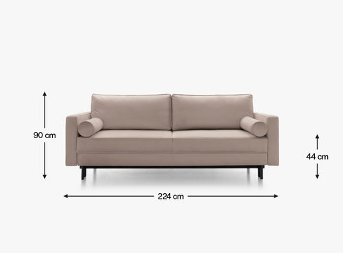 Klasyczna forma i subtelne pikowania sprawiają, że Romantica odnajdzie się niemal wszędzie – od przytulnego salonu po eleganckie studio. Siedzisko oparte na sprężynach falistych i piance gwarantuje wygodę, która nie znika po kilku miesiącach użytkowania. Do tego tkanina Magic Velvet nie tylko wygląda luksusowo, ale też jest przyjemna w dotyku i odporna na mechacenie. Dzięki rozkładanemu mechanizmowi typu DL w kilka chwil zamienisz sofę w wygodne łóżko, a pojemnik na pościel pozwoli szybko ogarnąć przestrzeń. Wysokie, czarne nóżki dodają wizualnej lekkości i ułatwiają sprzątanie, nawet robotem.