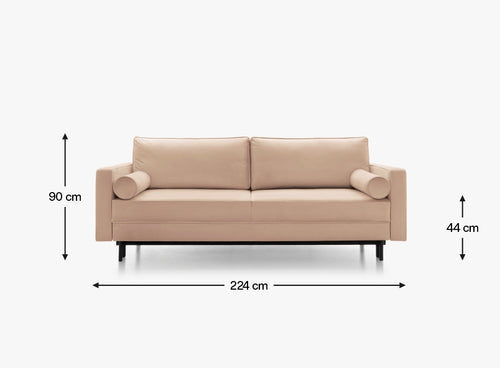 Klasyczna forma i subtelne pikowania sprawiają, że Romantica odnajdzie się niemal wszędzie – od przytulnego salonu po eleganckie studio. Siedzisko oparte na sprężynach falistych i piance gwarantuje wygodę, która nie znika po kilku miesiącach użytkowania. Do tego tkanina Magic Velvet nie tylko wygląda luksusowo, ale też jest przyjemna w dotyku i odporna na mechacenie. Dzięki rozkładanemu mechanizmowi typu DL w kilka chwil zamienisz sofę w wygodne łóżko, a pojemnik na pościel pozwoli szybko ogarnąć przestrzeń. Wysokie, czarne nóżki dodają wizualnej lekkości i ułatwiają sprzątanie, nawet robotem.