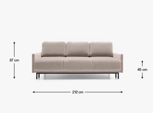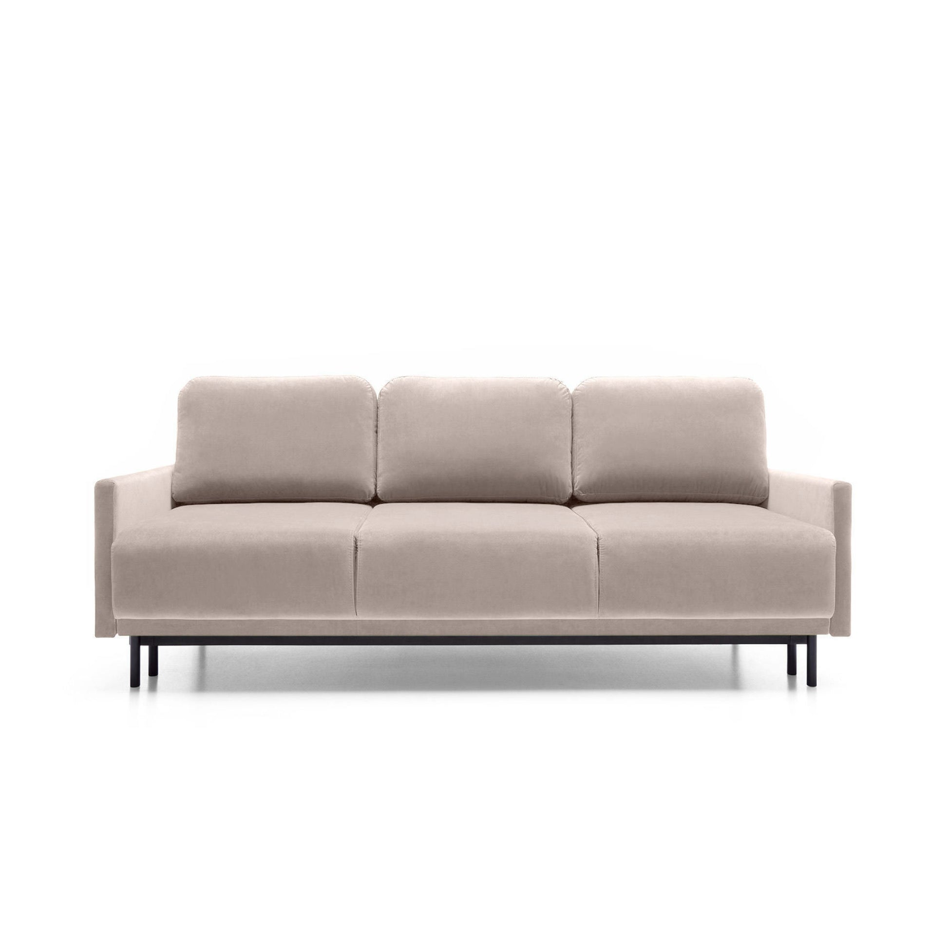 Choć Solo wyróżnia się minimalistyczną estetyką, kryje w sobie więcej niż widać na pierwszy rzut oka. Dzięki funkcji spania z łatwością przemienia się w wygodne łóżko – gotowe na niespodziewanych gości lub leniwe weekendy. Całość wsparta jest na smukłych, metalowych nóżkach, które dodają konstrukcji wizualnej lekkości i nuty nowoczesnej elegancji.