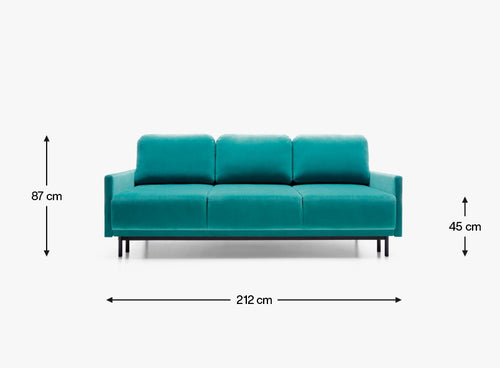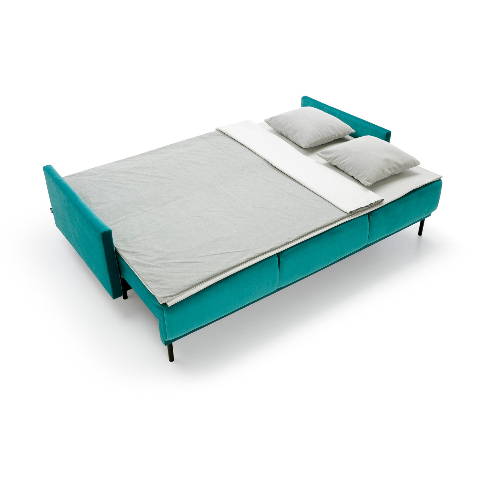 Choć Solo wyróżnia się minimalistyczną estetyką, kryje w sobie więcej niż widać na pierwszy rzut oka. Dzięki funkcji spania z łatwością przemienia się w wygodne łóżko – gotowe na niespodziewanych gości lub leniwe weekendy. Całość wsparta jest na smukłych, metalowych nóżkach, które dodają konstrukcji wizualnej lekkości i nuty nowoczesnej elegancji.