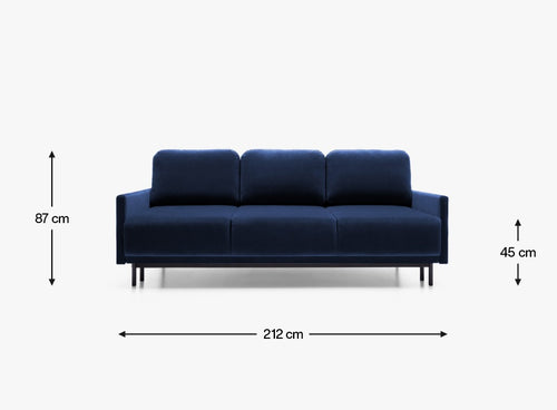 Choć Solo wyróżnia się minimalistyczną estetyką, kryje w sobie więcej niż widać na pierwszy rzut oka. Dzięki funkcji spania z łatwością przemienia się w wygodne łóżko – gotowe na niespodziewanych gości lub leniwe weekendy. Całość wsparta jest na smukłych, metalowych nóżkach, które dodają konstrukcji wizualnej lekkości i nuty nowoczesnej elegancji.
