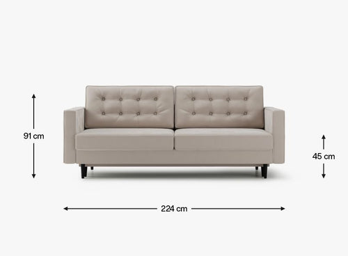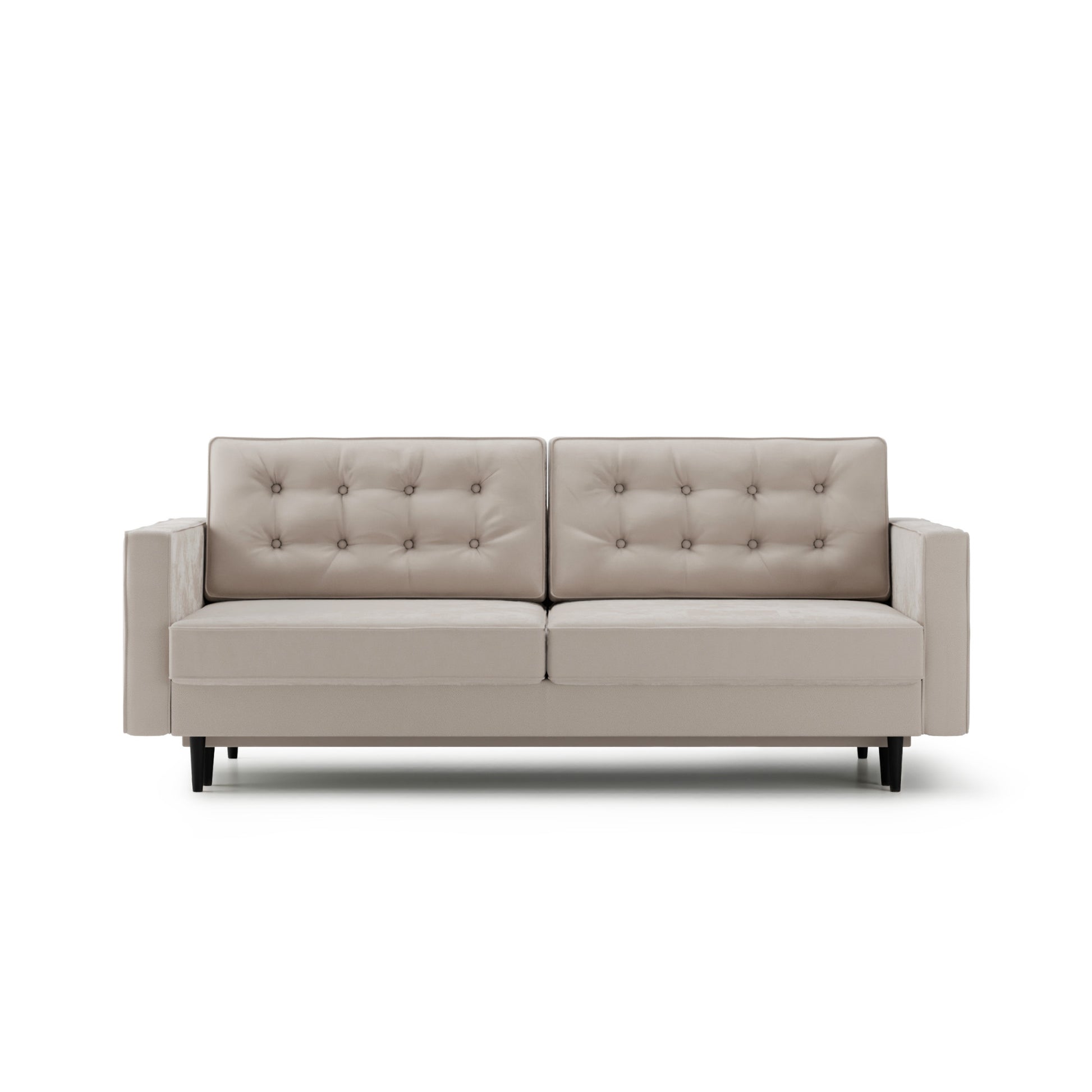 Tivoli to jednak nie tylko piękno, ale również praktyczność. Sofa wyposażona jest w funkcję spania, dzięki czemu w kilka chwil można ją przekształcić w wygodne łóżko, idealne zarówno do codziennego użytku, jak i okazjonalnych noclegów. Komfort snu zapewniają sprężyny faliste umieszczone zarówno w siedzisku, jak i oparciu, gwarantujące optymalne podparcie kręgosłupa oraz miękkość dopasowującą się do ciała.