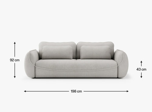 Zaokrąglona sylwetka pozbawiona ostrych krawędzi nadaje sofie elegancki, a zarazem nowatorski wygląd, jednocześnie gwarantując wysoki komfort użytkowania.