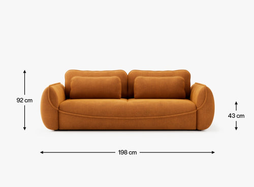 Zaokrąglona sylwetka pozbawiona ostrych krawędzi nadaje sofie elegancki, a zarazem nowatorski wygląd, jednocześnie gwarantując wysoki komfort użytkowania.