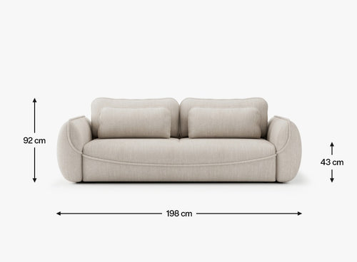 Zaokrąglona sylwetka pozbawiona ostrych krawędzi nadaje sofie elegancki, a zarazem nowatorski wygląd, jednocześnie gwarantując wysoki komfort użytkowania.