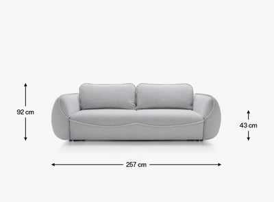 Sofa Umma o szerokości 257 cm przyciąga wzrok subtelną, organiczną linią i zaokrąglonymi kształtami, które wprowadzają do wnętrza łagodność i współczesny styl. Jej harmonijna sylwetka i dopracowane detale sprawiają, że to nie tylko funkcjonalny mebel, ale także wyrafinowany element wystroju.