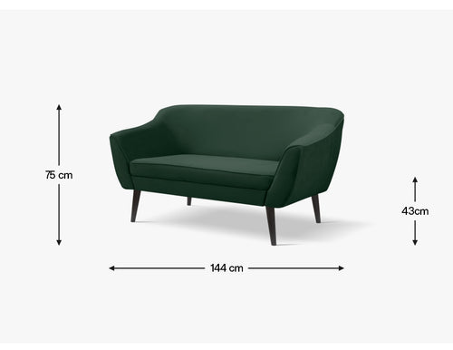 2-osobowa sofa Velo w butelkowym zielonym kolorze chciałaby być wszędzie – w małym mieszkaniu, dziecięcym pokoju, w biurze, w pracowni artystycznej. Jeszcze nikt jej nie powiedział, że tak się po prostu nie da. Więc jej dom będzie tam, gdzie potrzebujesz. Super wpisze się w skandynawskie, minimalistyczne wnętrza. Te domowe, te biurowe i użytkowe.