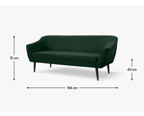 3-osobowa sofa Velo w butelkowym zielonym kolorze chciałaby być wszędzie – w małym mieszkaniu, dziecięcym pokoju, w biurze, w pracowni artystycznej. Jeszcze nikt jej nie powiedział, że tak się po prostu nie da. Więc jej dom będzie tam, gdzie potrzebujesz. Super wpisze się w skandynawskie, minimalistyczne wnętrza. Te domowe, te biurowe i użytkowe.